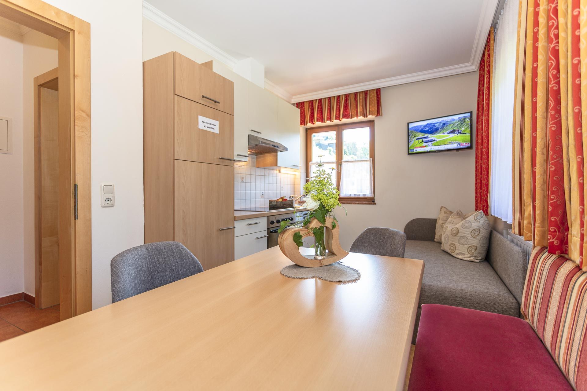 Wohnküche mit Essecke, Kaffeemaschine und Flat-TV