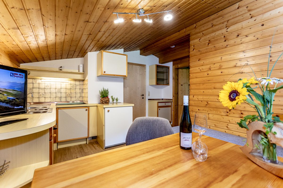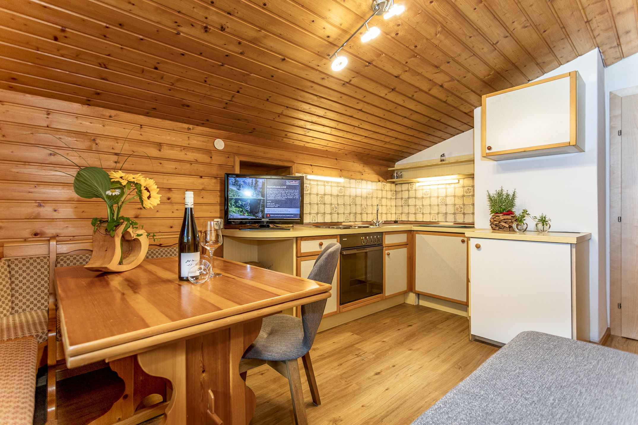 begeistert mit traditioneller österreichischer Holzverschalung, die für eine besonders heimelige Atmosphäre sorgt. Auch wenn die Wohnung ohne Balkon ausgestattet ist, genießen Sie vom Fenster aus einen wunderschönen Ausblick auf die Alpenwelt des Salzburger Landes.